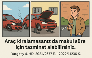 Trafik kazası sonrasında aracınız serviste kaldı ancak araç kiralamadınız mı? Pek çok araç sahibi, bu durumda mahrumiyet tazminatı talep edemeyeceğini sanmaktadır. Ancak Yargıtay 4. Hukuk Dairesi'nin 2021/2677 E. – ...